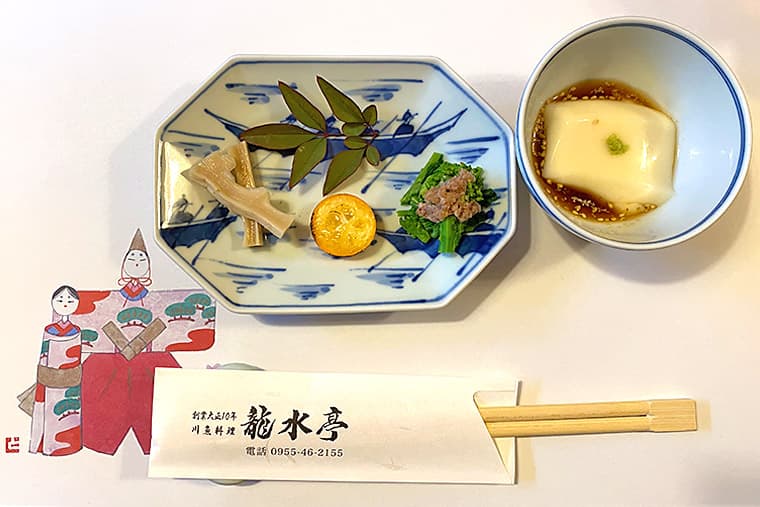 Before your meal, be sure to put aside a little time to explore the stunning delights of Arita, from the unique and long-running ceramic history to the incredible natural beauty of Ryumon Gorge. Sitting right on the doorstep of Ryusuitei, Ryumon Gorge is a lush pocket of Kyushu, practically untouched by tourism.