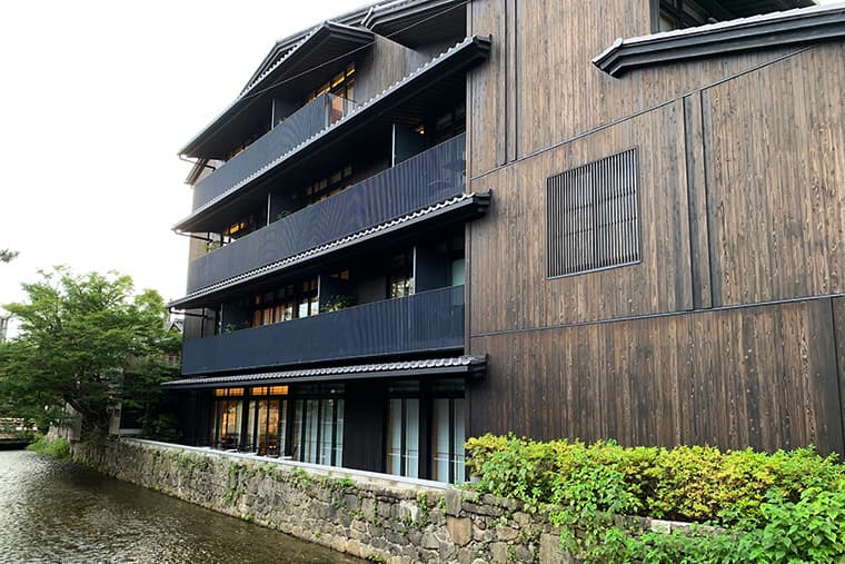 The boutique facility is best described as a luxury hotel with a ryokan influence. It was designed by contemporary Japanese legend Tadao Ando. With a bold dark exterior that both makes its presence felt while still harmonizing with its traditional surroundings, The Shinmonzen is Ando at his best, with quiet elegance and confidence with a touch of traditionalism.