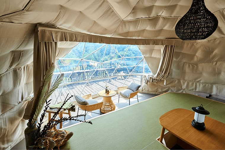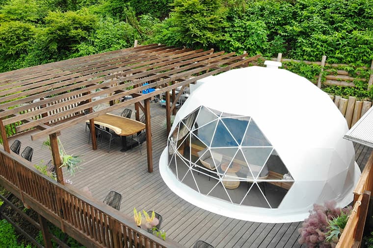 Hibiya Kadan "Sato Rakusu FUJINO" is an impressive glamping facility located in Fujino, Sagamihara City, Kanagawa Prefecture. Nestled in an area known for its stunning natural beauty, Sato Rakusu FUJINO is an idyllic escape from the mania of city life, making it a wonderful place to visit all year round.