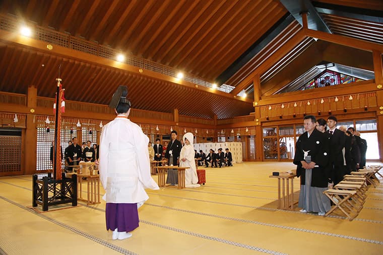 The Shinto-style wedding ceremony, hosted in the sacred and traditional grounds of the shrine, is the epitome of Japanese elegance.