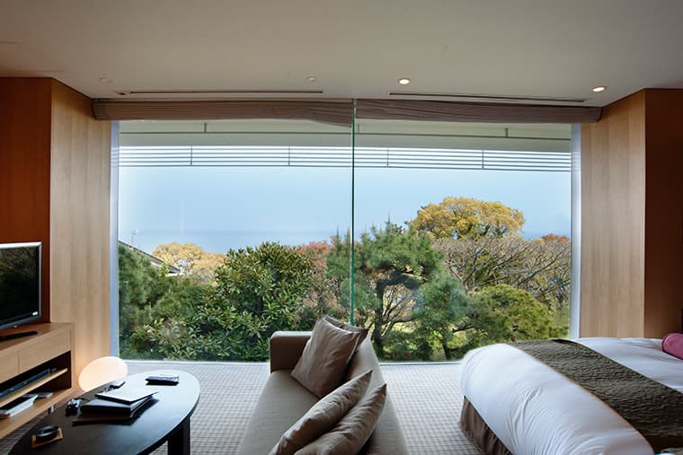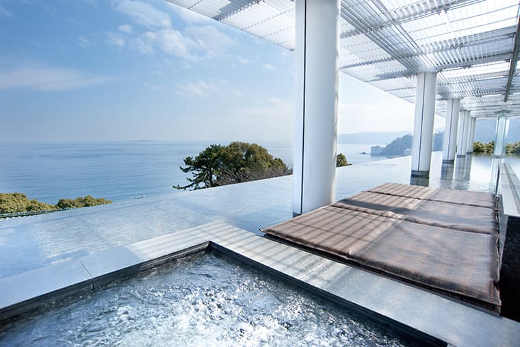 Boasting unparalleled panoramic views of Sagami Bay, the port of Atami, and the mountains that flank sea, Kaihoro was designed by Kengo Kuma, one of the world's greatest architectural icons, and the man who created the Tokyo 2020 Olympic Stadium.