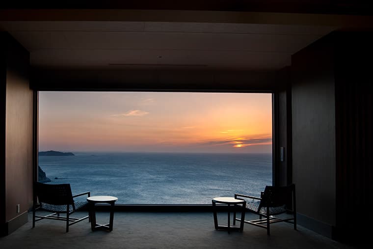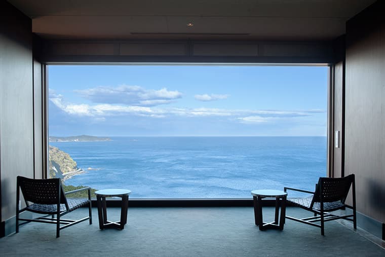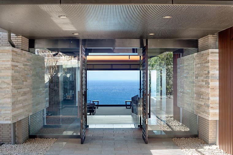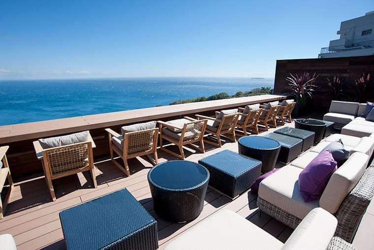 This elegant ryokan boasts a modern design, with fabulous views over Sagami Bay and first-class service.