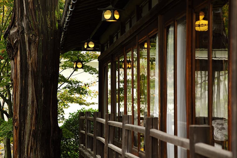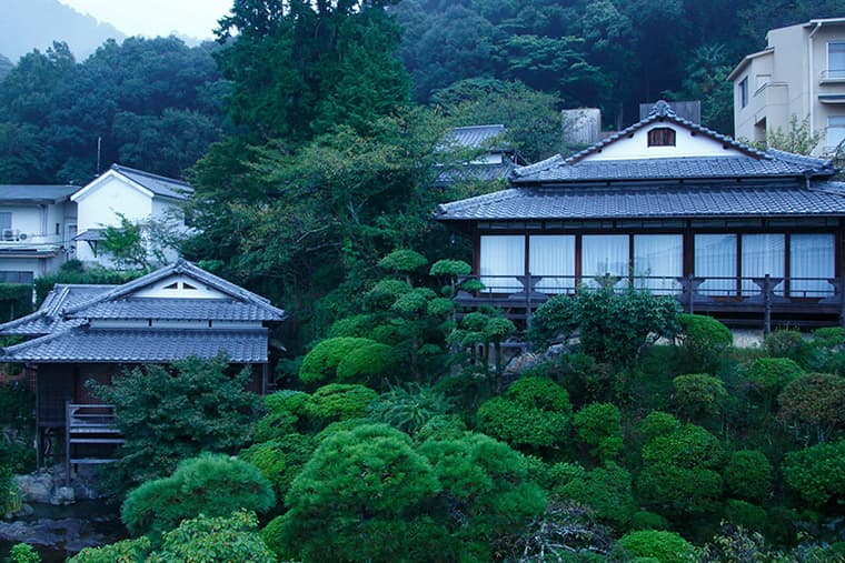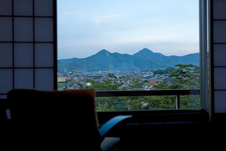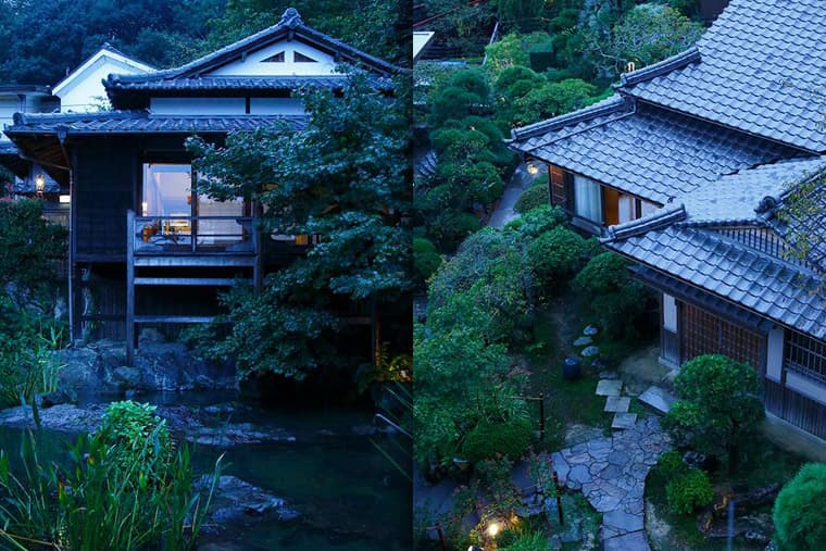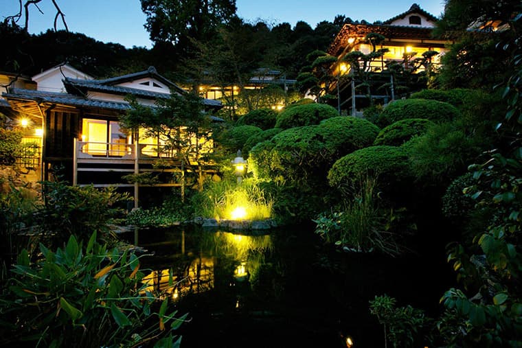 This ryokan boasts several sukiya-zukuri heritage villas, which are available for guests to stay in, both for a unique experience and to get a unique perspective on historical lifestyles. These villas are set amid a Japanese garden, and the whole establishment boasts a stunning environment - one side of the ryokan looks out over the town of Kotohira and the Mt. Sanuki-Fuji mountain range in the distance; the other looks out on the beautifully tended grounds and historic buildings.