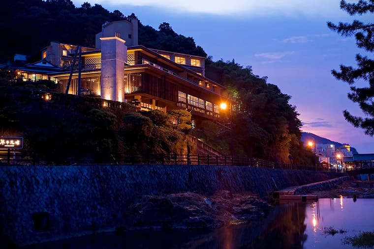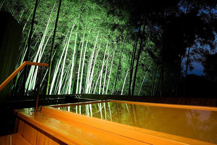 The rotemburo open-air baths of the ryokan's Kompira Spa are a gorgeous pleasure. The public bath, "Kissho no yu," is surrounded by a bamboo glade and is lit up at night, lending a dreamy atmosphere to the bathing experience, and simply soaking under stars and gazing out at the view of the city lights and the mountains beyond is a rare pleasure.