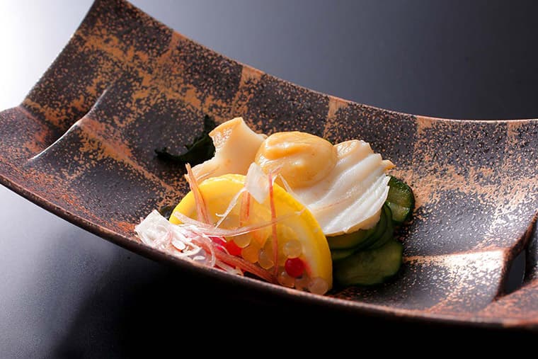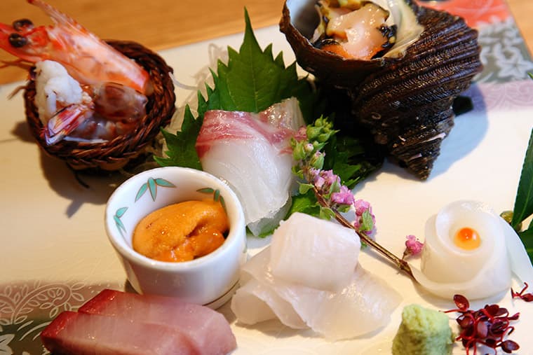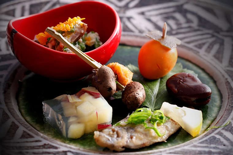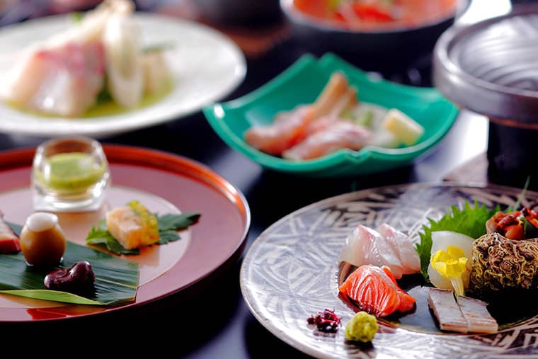 Villa Rakuen's chefs draw inspiration for their delicious and artful creations from Awaji Island, which is known for its excellent food and local farms that supply the Imperial household. The world-famous Kobe beef cows start their lives on farms on the island before being shipped to the Kobe area. The fresh seafood from the Seto Naikai (Inland Sea) is equally famous and is well represented in Villa Rakuen's kaiseki ryori traditional Japanese haute cuisine. Meals are served in the rooms, traditional ryokan style.