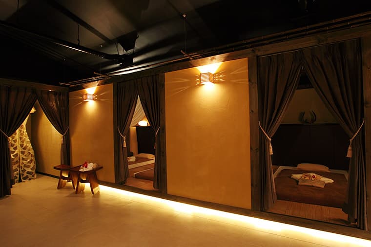 Redolent with spice and incense, Ashiya Bankunmei has seven spaces for treatments plus an herb steam tent. Ashiya Bankunmei's three qualified masseuses offer Thai massage, foot massage, herb ball treatment, and aromatherapy.