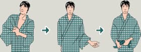 ・When putting on a yukata be sure to wrap the left side over the right and then secure it shut with the tie. There’s one faux pas to be wary of, and that’s in Japan dead people are dressed in a yukata wrapped right side over left, so it’s best to make sure your yukata is secured the right way around.