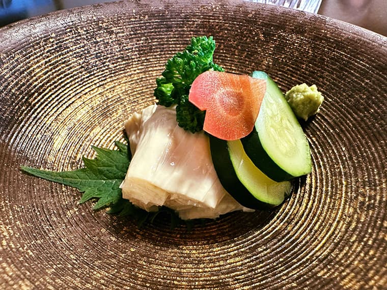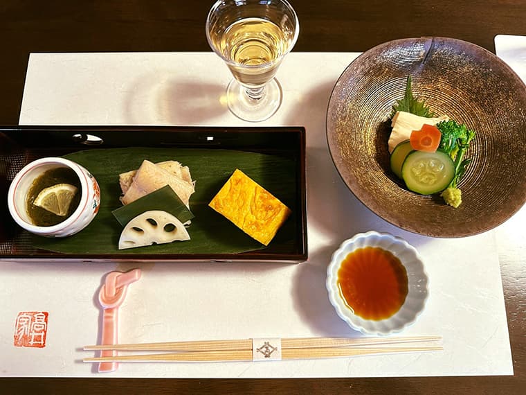 In a traditional private tatami room overlooking the beautiful garden, we were greeted by the Okami-san, where we were treated with a glass of plum wine as an aperitif and enjoyed the full Yuba course prepared by the same chefs licensed to cook for the Emperor.
