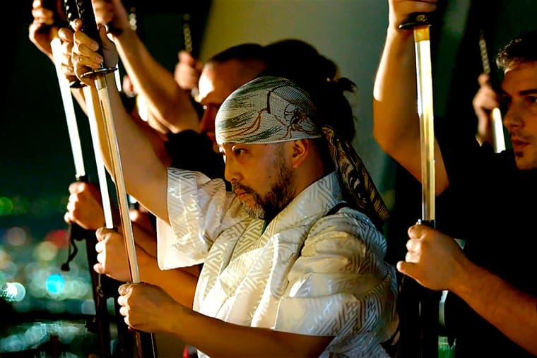 It was around 20 years ago that Tetsuro founded his own samurai team; during that time, he discovered there wasn't much work going in Japan. So filled with nothing more than rudimentary English skills, plenty of samurai skills and even more ambition, Tetsuro and his crew headed off to America where they performed on the streets of L.A.